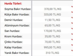 Güncel Hurda Fiyatları Marmara Ereğlisi Hurdacı: